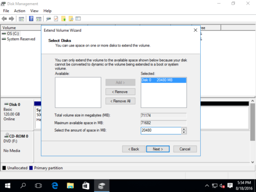 If you want to extend RAID partition, do not break RAID array. If you run Server 2016 as virtual machine in VMware or Hyper-V, follow the same steps, there’s no difference.