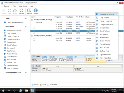Step 1. Download NIUBI Partition Editor, right click the right adjacent partition such as D and select “Resize/Move Volume“.